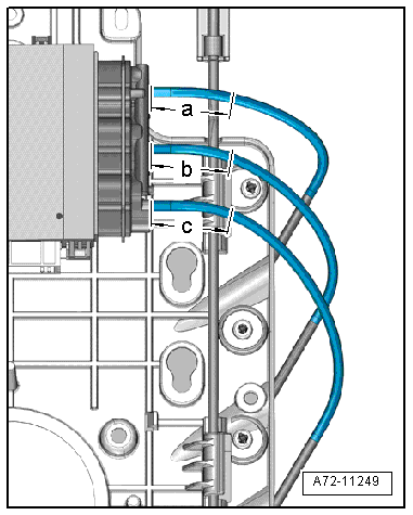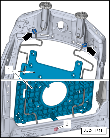 - Disconnect pneumatic lines to the lumbar support air cushions at the following points (refer to → Chapter "Pneumatic Lines, Disconnecting and Connecting"):