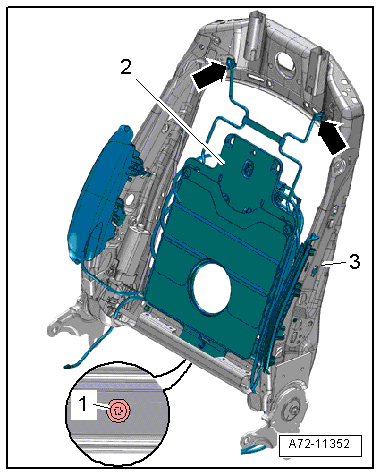 - Remove the backrest cover. Refer to → Chapter "Backrest Cover, Removing and Installing, Multi-contour Seat".