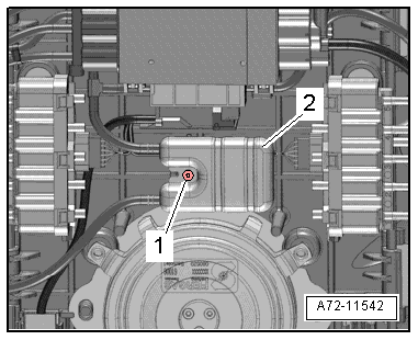 - Drill out the rivet -1- from the pulsation damper -2-.