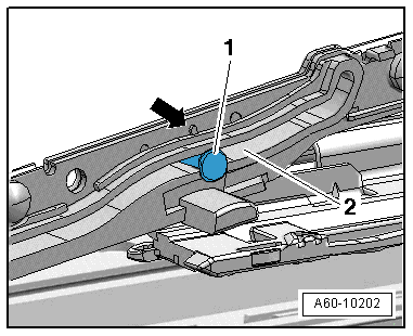 - Remove the interior lighting cover. Refer to → Electrical Equipment; Rep. Gr.96; Controls; Front Interior Lamp/Reading Lamp, Removing and Installing