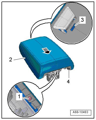 - Push the center armrest padding -2- out of the mounts -4- in direction of -arrow- at the same time.