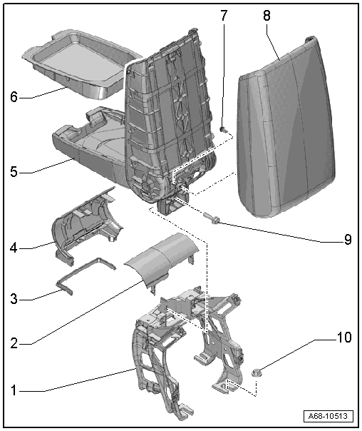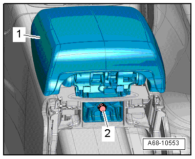 - Remove the front center armrest. Refer to → Chapter "Front Center Armrest, Removing and Installing".