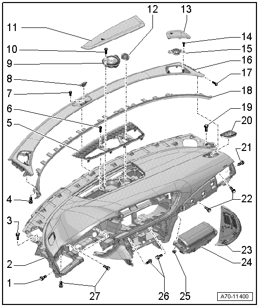 - Follow the allocation of the airbag to the instrument panel. Refer to