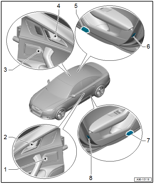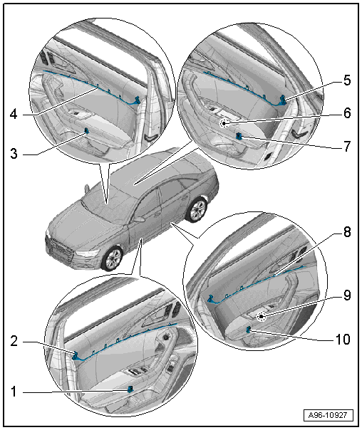 → Chapter "Left/Right Rear Door Warning Lamp -W37-/-W38-, Removing and
