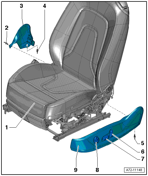 → Chapter "Seat Side Trim on the Tunnel Side, Removing and Installing".