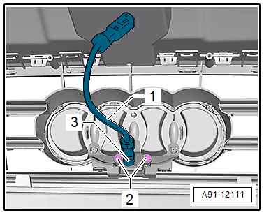 - Remove the radiator grille from the bumper cover. Refer to → Body Exterior; Rep. Gr.63; Front Bumper; Bumper Cover, Removing and Installing.