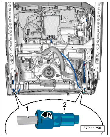 - Disconnect the pneumatic lines -1 and 2- to the seat bolster inflation adjuster air cushions.