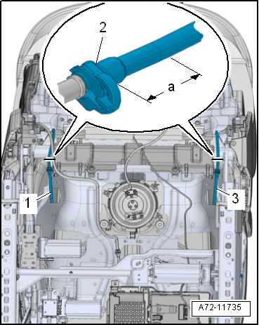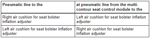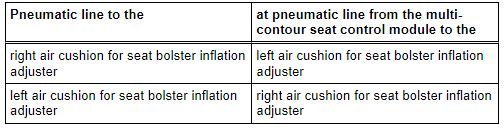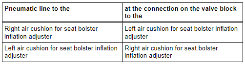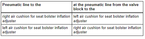 - Disconnect the pneumatic lines -1 and 3- to the seat bolster inflation adjuster air cushions at the following points: