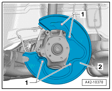 - Remove the wheel bearing unit. Refer to → Suspension, Wheels, Steering; Rep. Gr.42; Wheel Bearing, Trailing Arm; Wheel Bearing Unit, Removing and Installing.