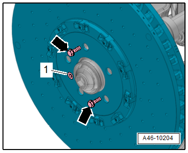 - Remove the bolt -1- and remove the brake rotor by hand. Do not use any tools.