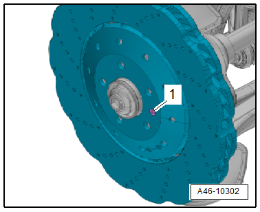 - If the brake pads and rotor are being replaced, remove the brake pads. Refer to → Chapter "Brake Pads, Removing and Installing, Ceramic Brakes".