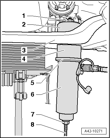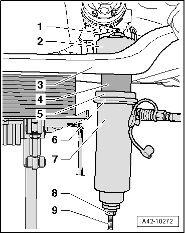 - Remove the coil springs. Refer to → Chapter "Spring, Removing and Installing, Coil Spring".