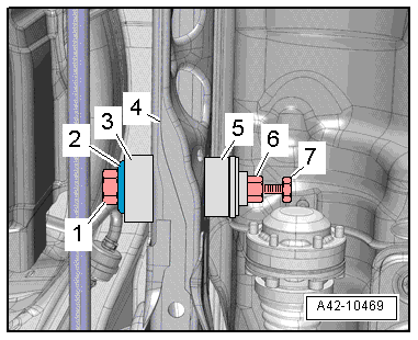 - Remove the bearing from the subframe while turning at the Nut - Component -3346/3- and counterholding at the Spindle -T40185/9-.