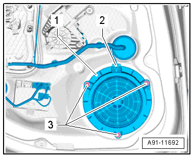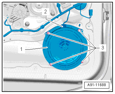 - Remove the rear door trim panel. Refer to → Body Interior; Rep. Gr.70; Rear Door Trim Panels; Rear Door Trim Panel, Removing and Installing.