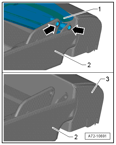 - Remove the lower center cushion -3-. Refer to → Chapter "Lower Center Cushion, Removing and Installing".