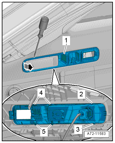 - Remove the luggage compartment lamp. Refer to → Electrical Equipment; Rep. Gr.96; Lamps; Luggage Compartment Lamp W3, Removing and Installing.
