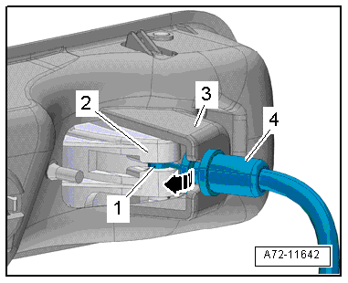 - Unclip the release cable -4- at the coupling rod -2- for the release cable -arrow-.