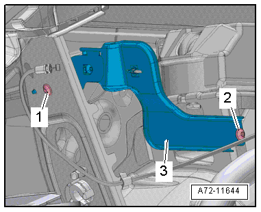 - Remove the bolts -1 and 2- for the release bracket.