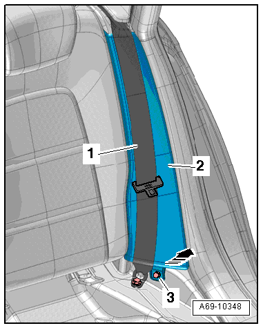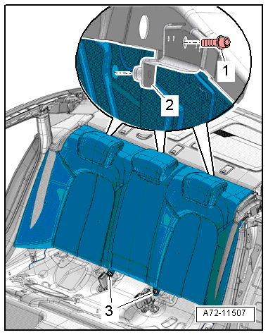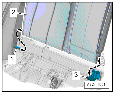 - Remove the trim -1- upward and off the rear seat backrest -3-.
