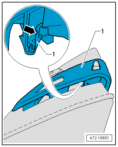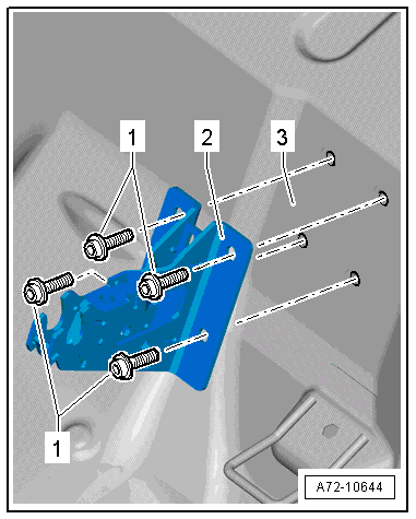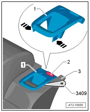 - Remove the rear center armrest trim mount. Refer to → Chapter "Center Armrest, Removing and Installing, Market-Specific".