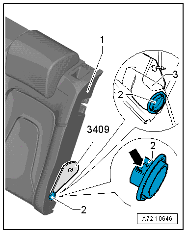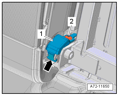 - Unclip the bearing sleeve -2- from the rear seat backrest frame -1- using the Trim Removal Wedge -3409- and remove it.