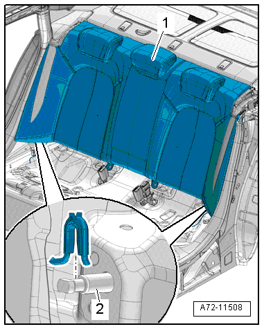 - Remove the rear seat backrest. Refer to → Chapter "Rear Seat Backrest, Removing and Installing".