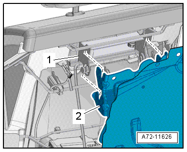 - Remove the rear backrest frames -1- at the retaining bracket -2- from the rear panel.