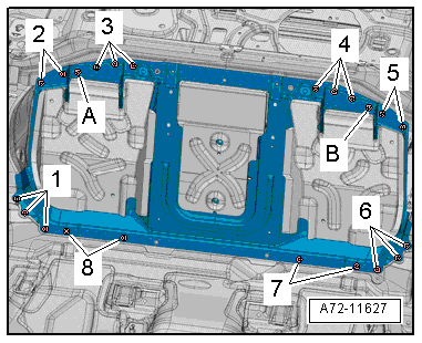 - Remove the center support -2- from the floor panel -3-.