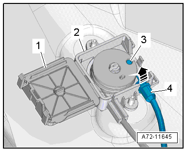 - Remove the control module -3- towards the rear -arrow B-, disengage the hooks from the mount, and remove the control module upwards.