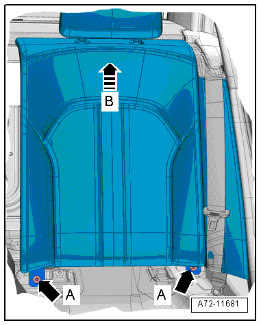 - Remove the bolts -arrows A- for the rear seat backrest.
