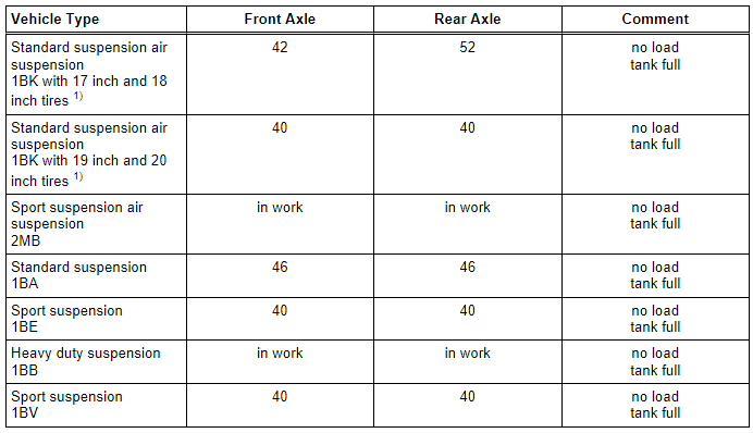 1) The suspension that the vehicle is equipped with is indicated on the vehicle data plate. The suspension is indicated by a PR number. For the correct PR numbers and assigned suspensions. Refer to → Chapter "Production Control Number (PR number) Explanation".