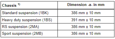 Tightening of the respective bolts/nuts must only occur if dimension -a-, measured before installation between wheel hub center and lower edge of wheel house, has been attained.