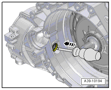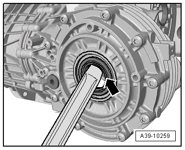 - Remove the right flange shaft. Refer to → Chapter "Right Flange Shaft, Removing and Installing".