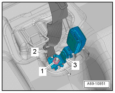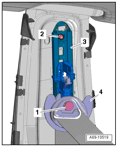 - Remove the seat belt height adjuster -3- at the top of the B-pillar.