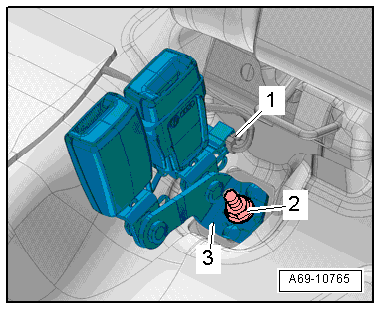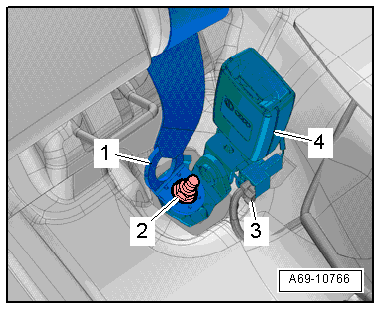 - Remove the bolt -3- and then remove the seat belt latch -1-.