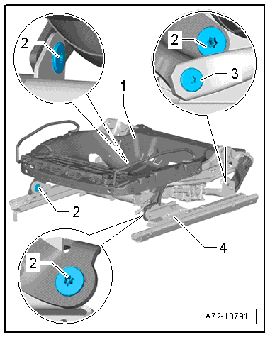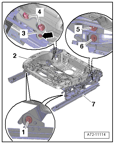 - Remove the seat position sensor on the lower seat frame. Refer to → Chapter "Seat Position Sensor, Removing and Installing".