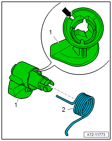 - Insert the spring -2- into the release lever -1- for the outer seat side (sill-side).