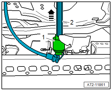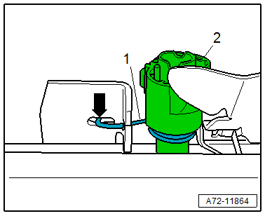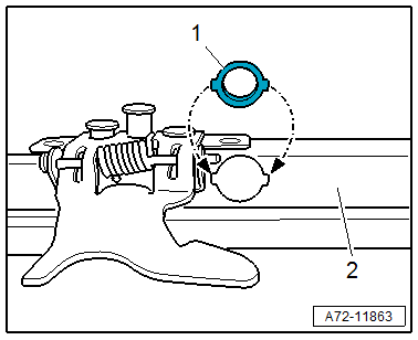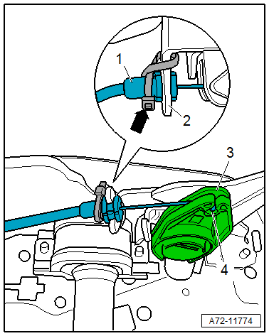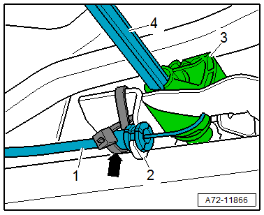 - Secure the release cable sheath -1- with a cable tie -arrow- in the bracket -2-.