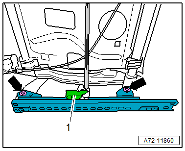 - Remove the seat rail by slightly lifting the release lever -1- for the lock pin.