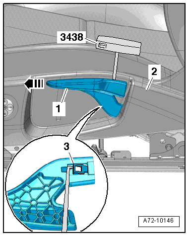 - Release the tab -3- using the T-Handle Hook -3438- and at the same time, remove the seat height adjustment handle in the direction of -arrow- from the lever.