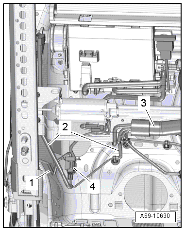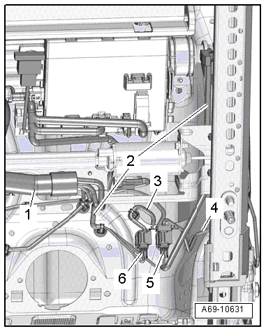 - Remove the front passenger seat. Refer to → Chapter "Front Seat, Removing and Installing".
