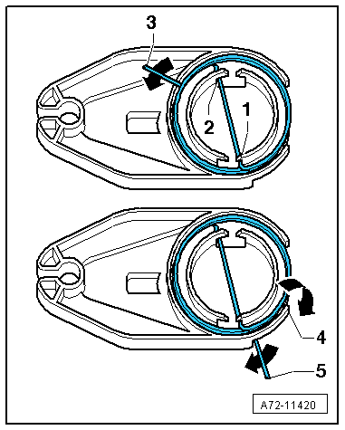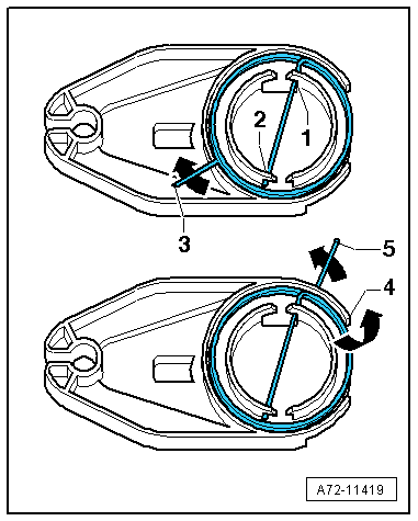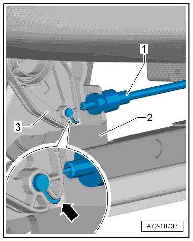- Disengage the end of the release cable -arrow- at release cable retainer lever -3- of the seat forward/back adjuster.