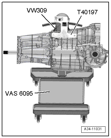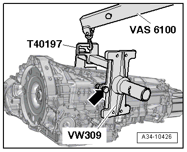 - Hold the transmission with the Shop Crane -VAS6100-. Refer