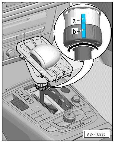 - Make sure the selector lever handle is installed correctly, refer to → Chapter "Selector Lever Handle, Removing and Installing".