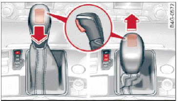 The selector lever is not locked when shifting quickly through N, for example from R to D. This makes it possible to free the vehicle when it is stuck by "rocking" it. The selector lever lock engages if the lever stays in the N position longer than 2 seconds when the brake pedal is not pressed.