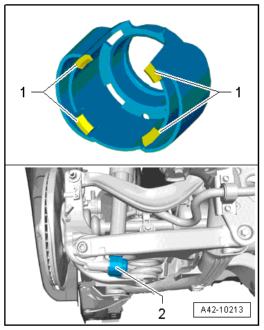 - If it is necessary to replace the shock absorber, release the tabs -1- and remove the stone chip protection -2-.