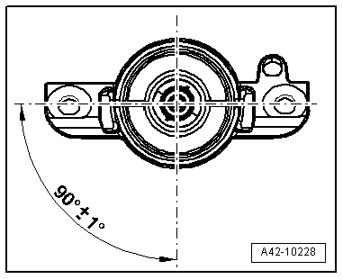 - Install the upper shock absorber mount so it is rotated 90º to the shock absorber mount.