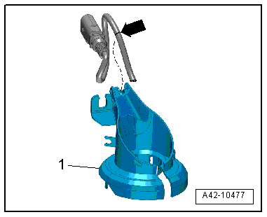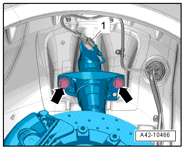 - Free up the electric wire -arrow- and remove the cap -1- from the upper shock absorber mount.
