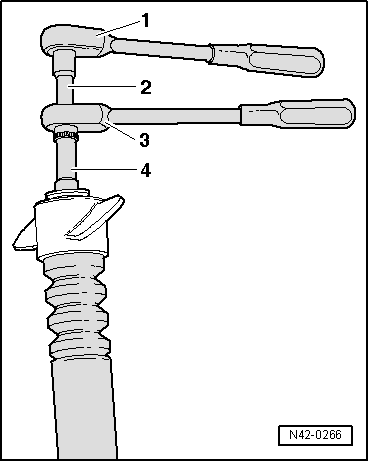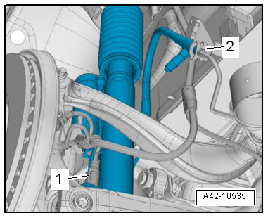 - Remove the wheel housing liner. Refer to → Body Exterior; Rep. Gr.66; Wheel Housing Liner; Rear Wheel Housing Liner, Removing and Installing.
