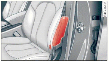 The side airbag system supplements the safety belts and can help to reduce the risk of injury to the driver's, front and rear passenger's upper torso on the side of the vehicle that is struck in a side collision. The airbag deploys only in side impacts and only when the vehicle acceleration registered by the control unit is high enough. If this rate is below the reference value programmed into the control unit, the side airbags will not be triggered, even though the car may be badly damaged as a result of the collision. It is not possible to define an airbag triggering range that will cover every possible angle of impact, since the circumstances will vary considerably between one collision and another. Important factors include, for example, the nature (hard or soft) of the impacting object, the angle of impact, vehicle speed, etc.